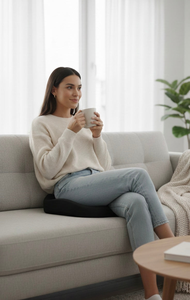 Crafted to gently elevate pressure away from the coccyx, providing refined comfort and reducing the strain that builds during prolonged sitting.